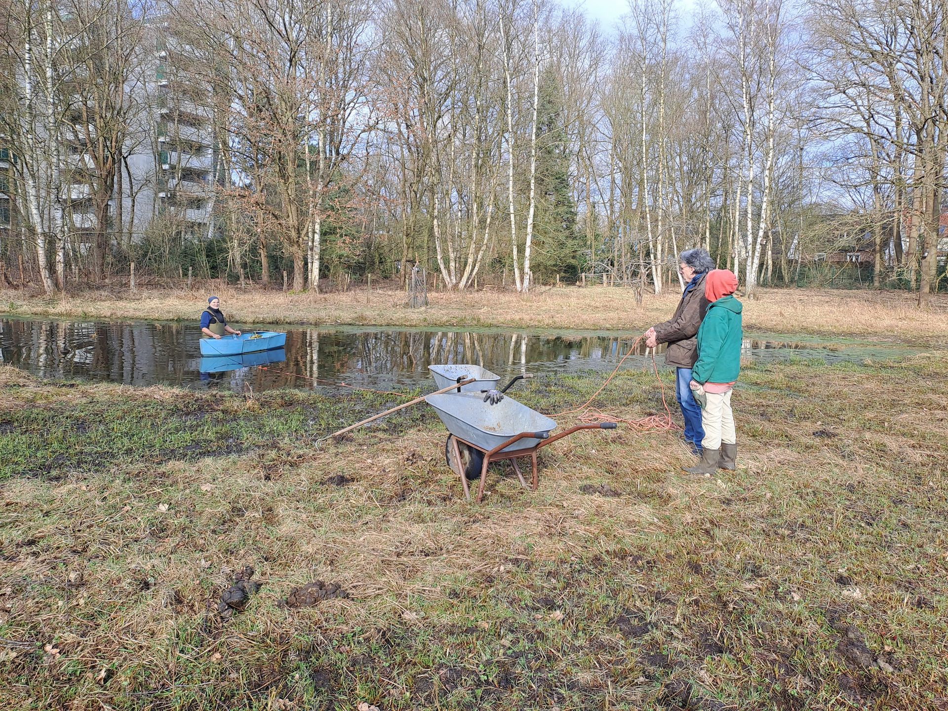 Außerdem haben wir entdeckt, dass tatsächlich schon der erste Froschlaich zu finden war und haben noch weiteren in die Blenke gesetzt.