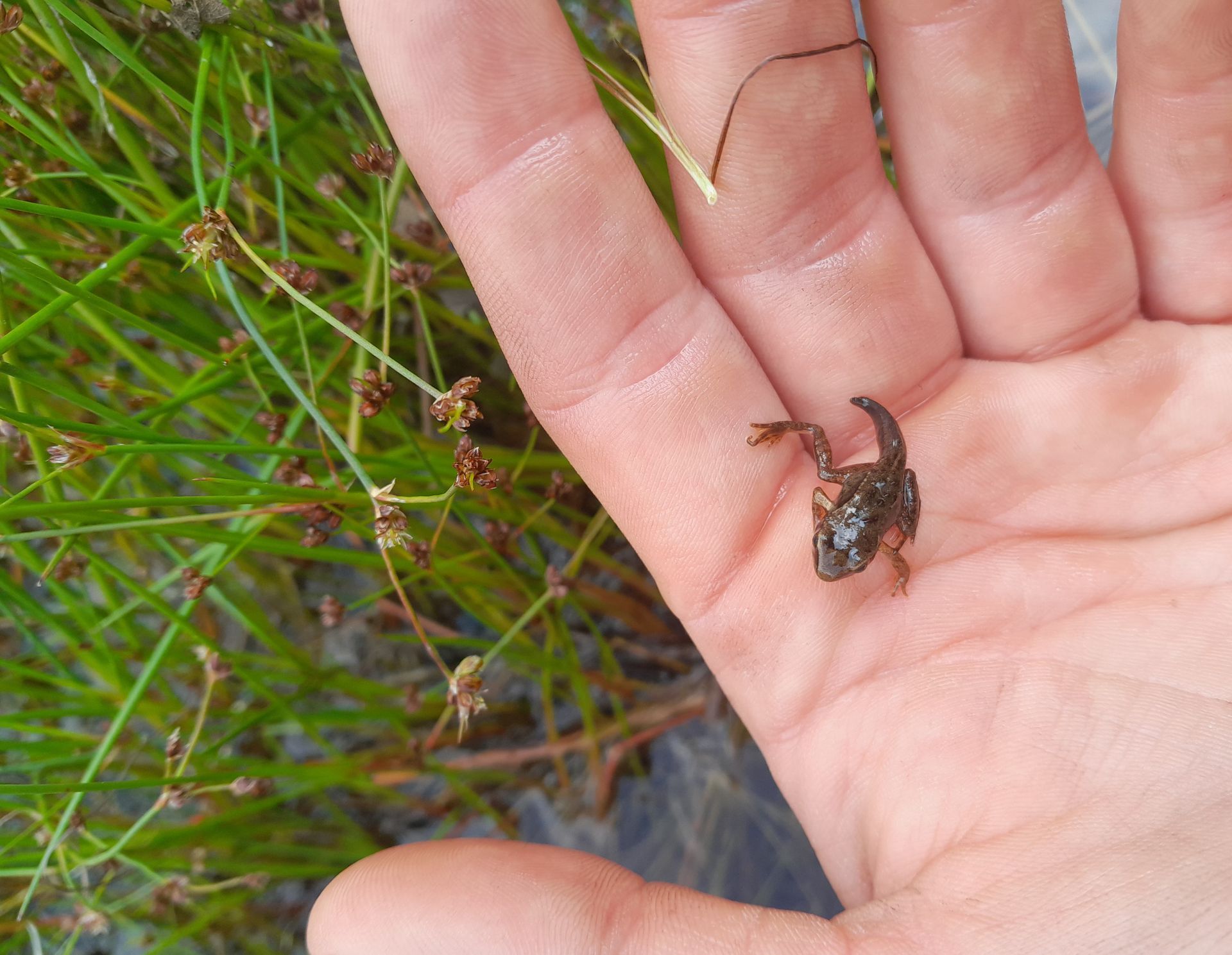 Aus den Froscheiern in unserer Blenke sind Kaulquappen geschlüpft. Die ersten haben sogar schon kleine Beine bekommen. In diesem Stadium nennt man die Tierchen auch Schwanzlurche. Sie müssten jetzt also schon ca 1,5-2 Monate alt sein.