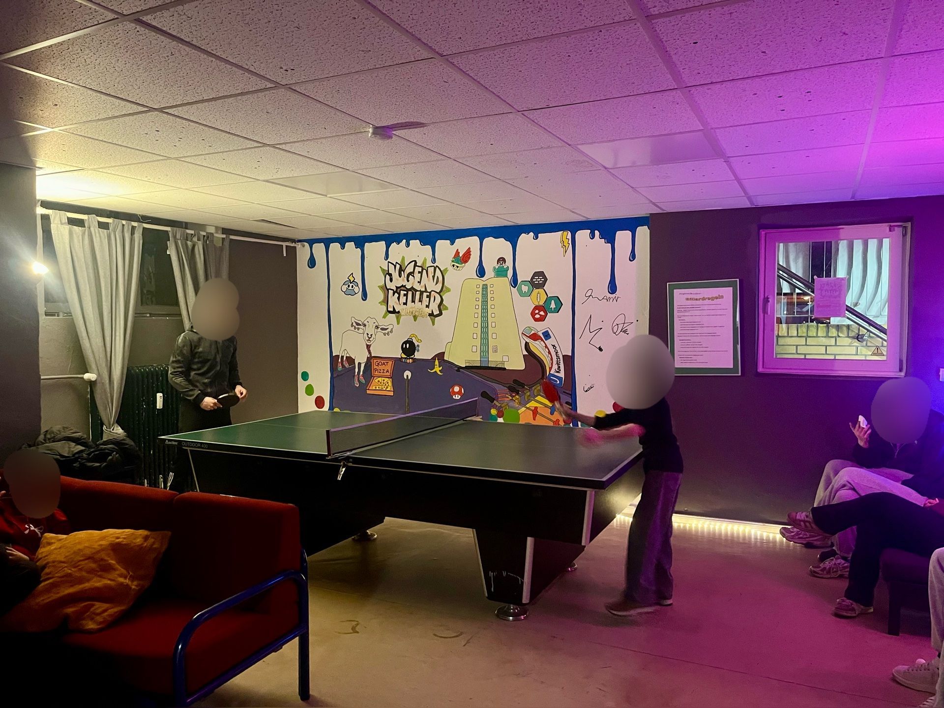 Der Jugendkeller ist mit einem Ausflug zum Schlittschuhlaufen in die Ferien gestartet. Außerdem wurde gemeinsam leckere Gerichte gekocht und es sich bei einem Filmeabend im Keller gemütlich gemacht. Natürlich wurde auch fleißig gekickert, Spiele gespielt, Musik gehört und gechillt. Zum Abschluss der Ferien wurde ein großes Tischtennis Tunier veranstaltet, bei dem die Jugendlichen ihre Fähigkeiten mit dem Schläger unter Beweis stellen konnten.